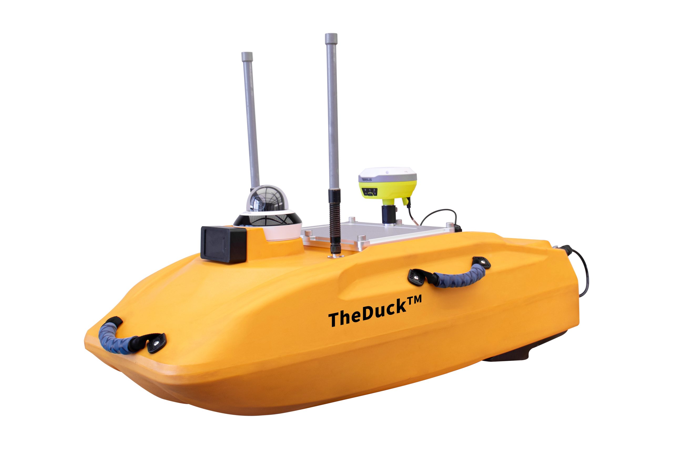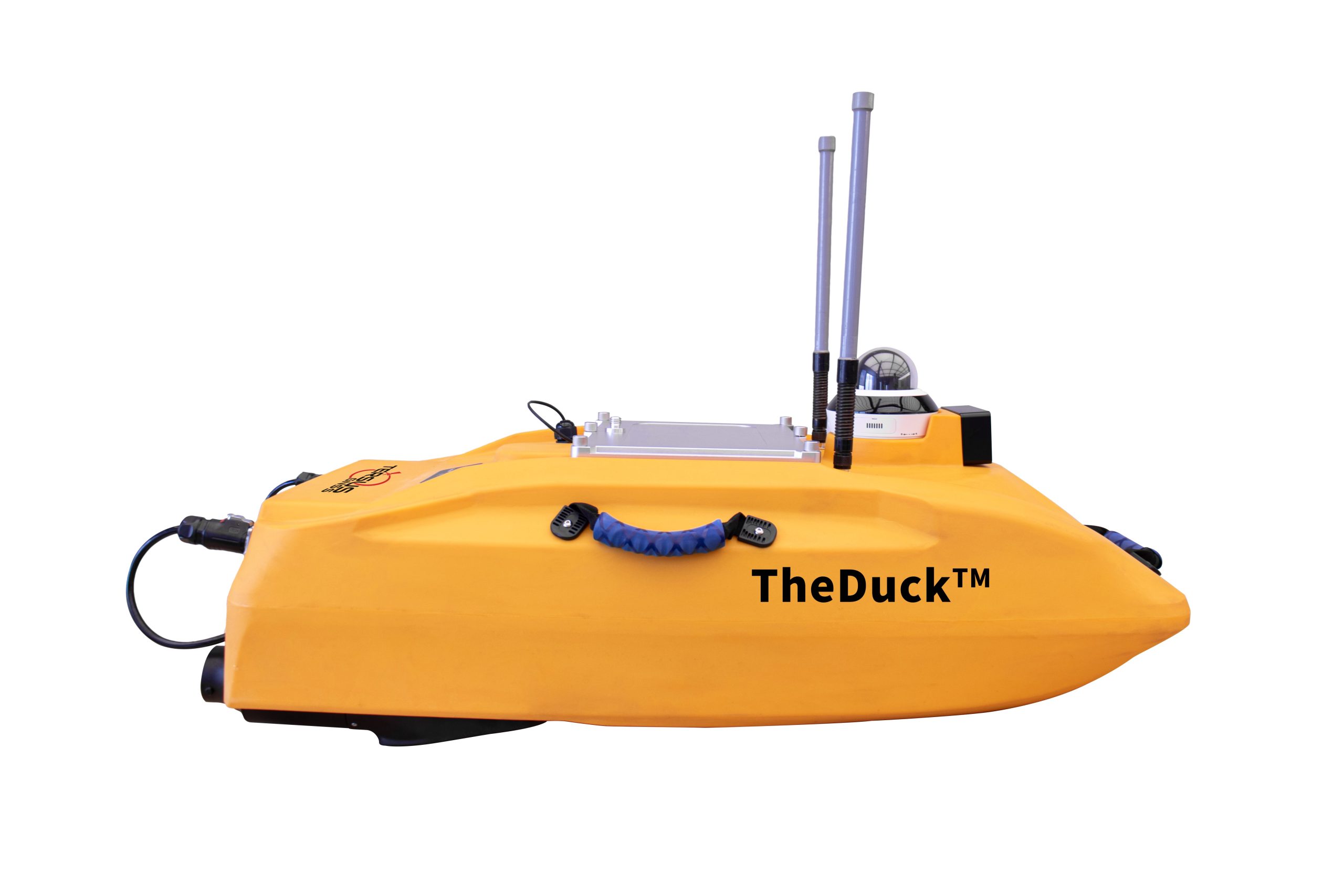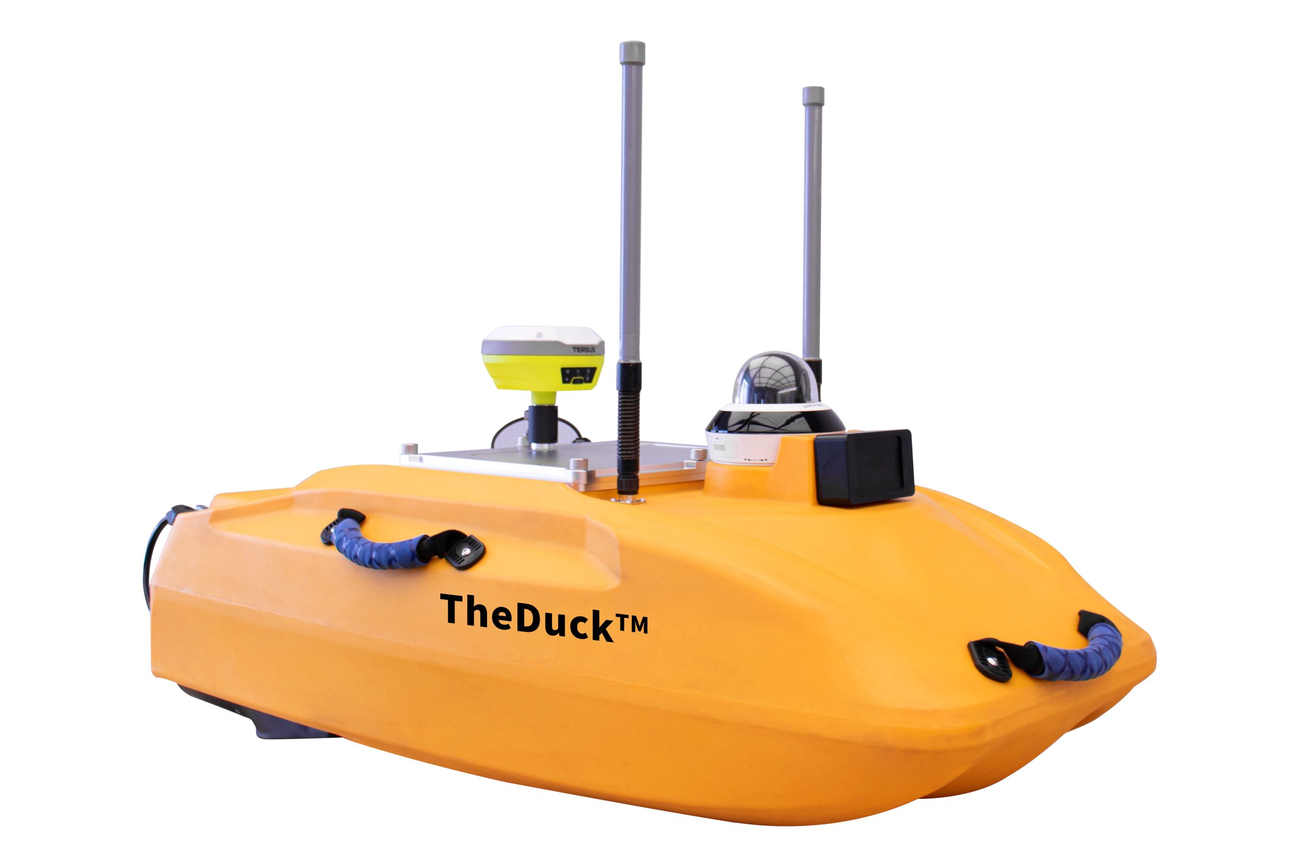 TheDuck™ adalah sistem USV laut yang mengintegrasikan teknologi GNSS RTK presisi tinggi dengan single beam echo sounder. Kapal ini memiliki desain lambung M-shaped untuk stabilitas maksimal saat menghadapi gelombang dan angin, serta mendukung navigasi Auto-Pilot.